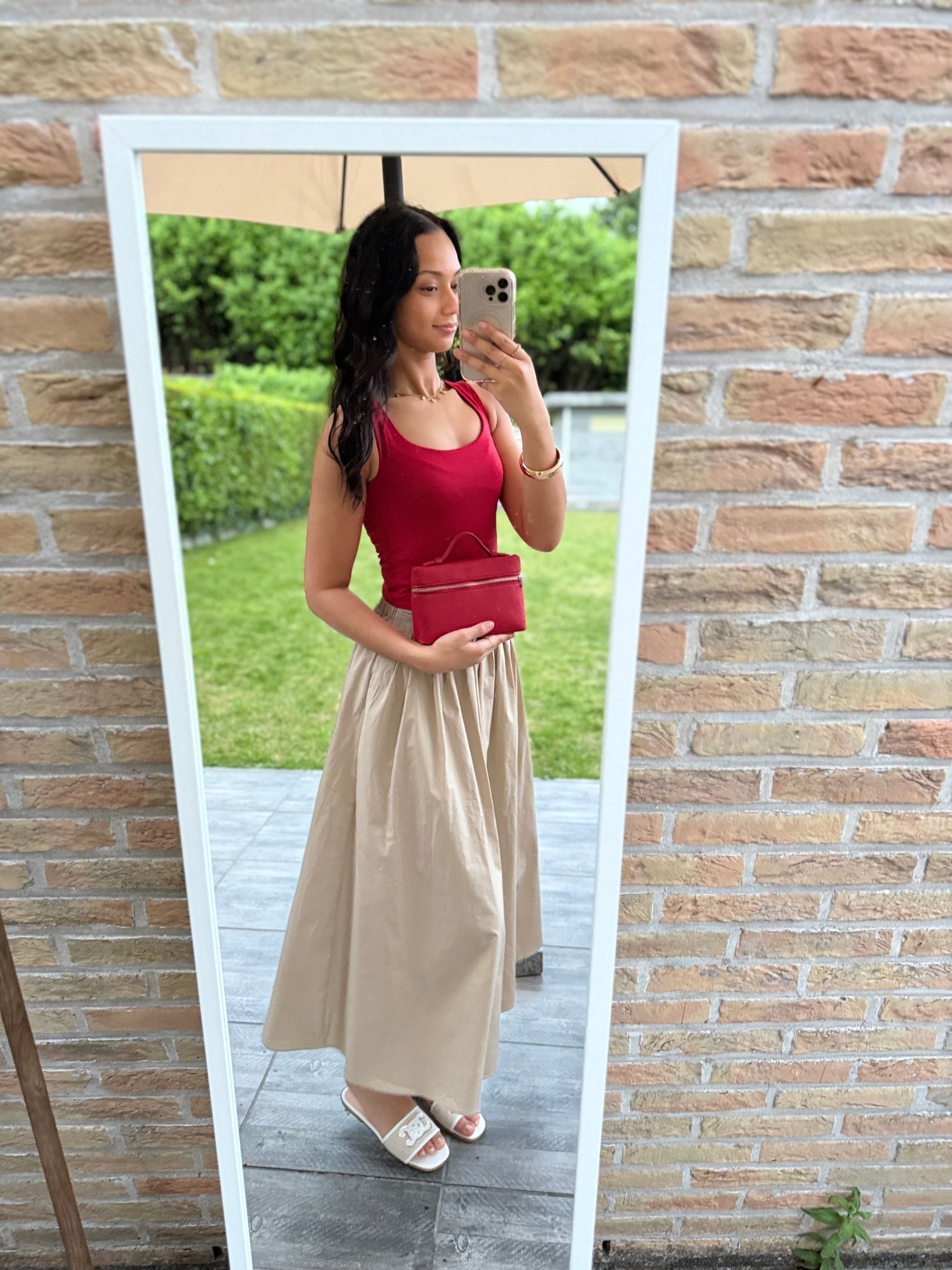 Ajoutez une touche d’élégance décontractée à votre dressing avec cette jupe longue en popeline de coton. À la fois légère et structurée, elle offre un tombé fluide parfait pour la mi-saison comme pour les journées estivales.